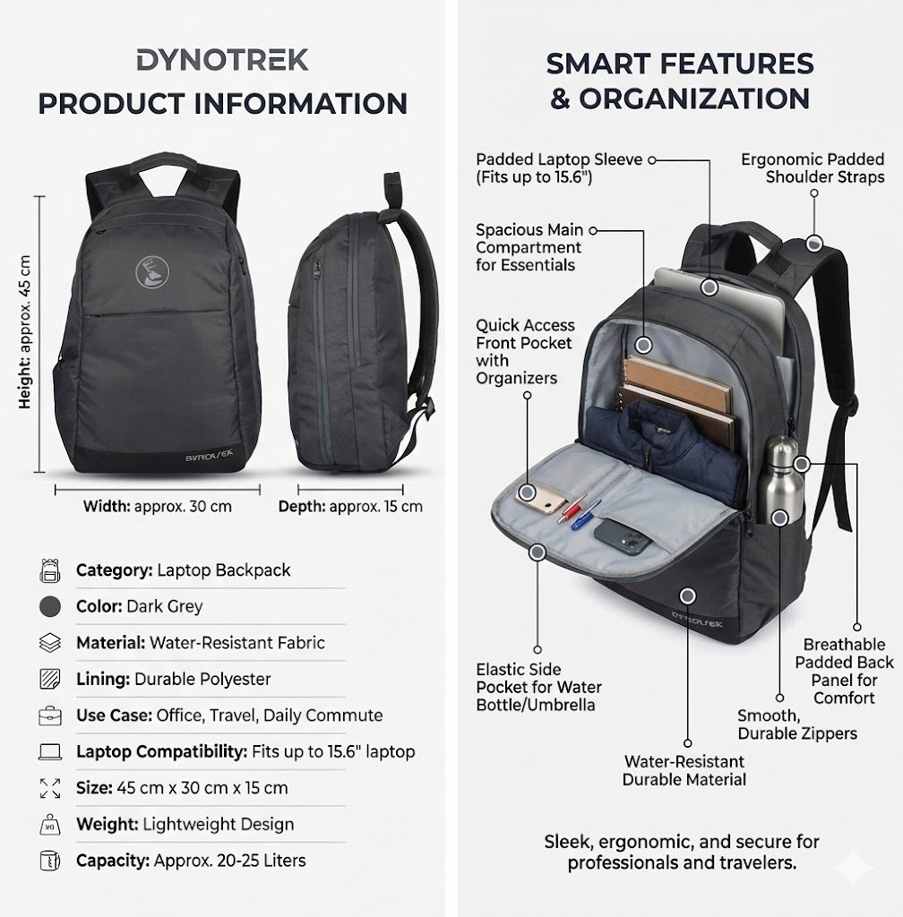 🛒 Make your daily carry smarter, safer, and more stylish. Choose the Dynotrek Altron Laptop Backpack today and experience comfort with confidence.