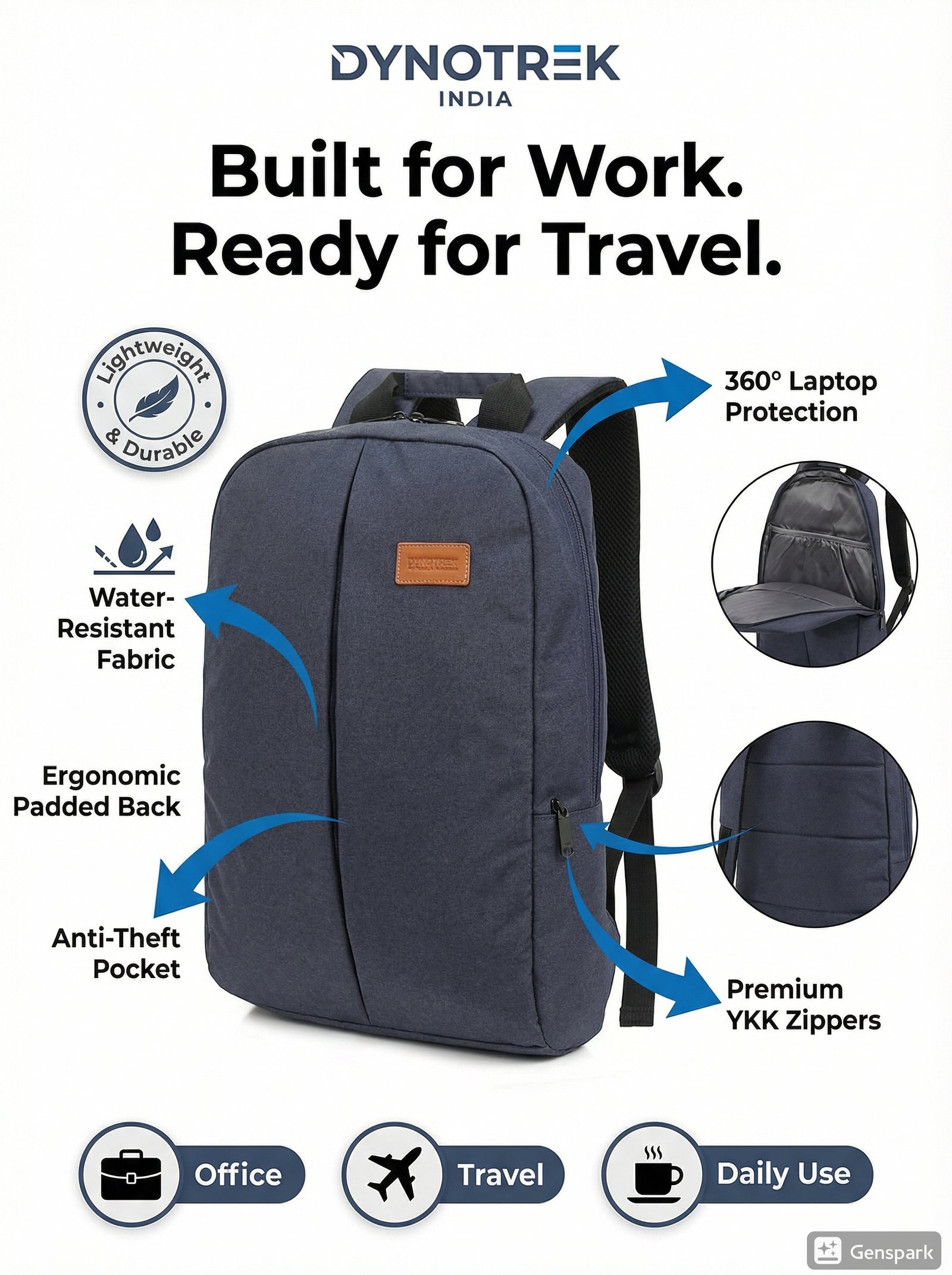 With Dynotrek’s focus on quality, durability, and practical design, this backpack is the perfect everyday companion for work, study, and travel.