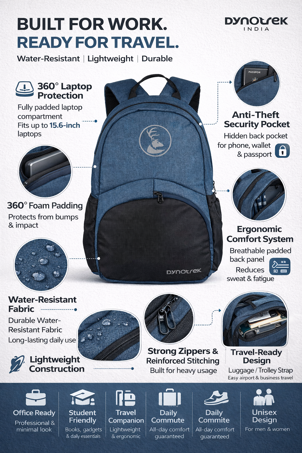 Proudly made in India, the Dynotrek Kinetic backpack reflects quality craftsmanship and reliable performance. If you’re looking for a backpack that combines style, strength, and smart storage, Dynotrek Kinetic is the perfect choice for everyday adventures.
