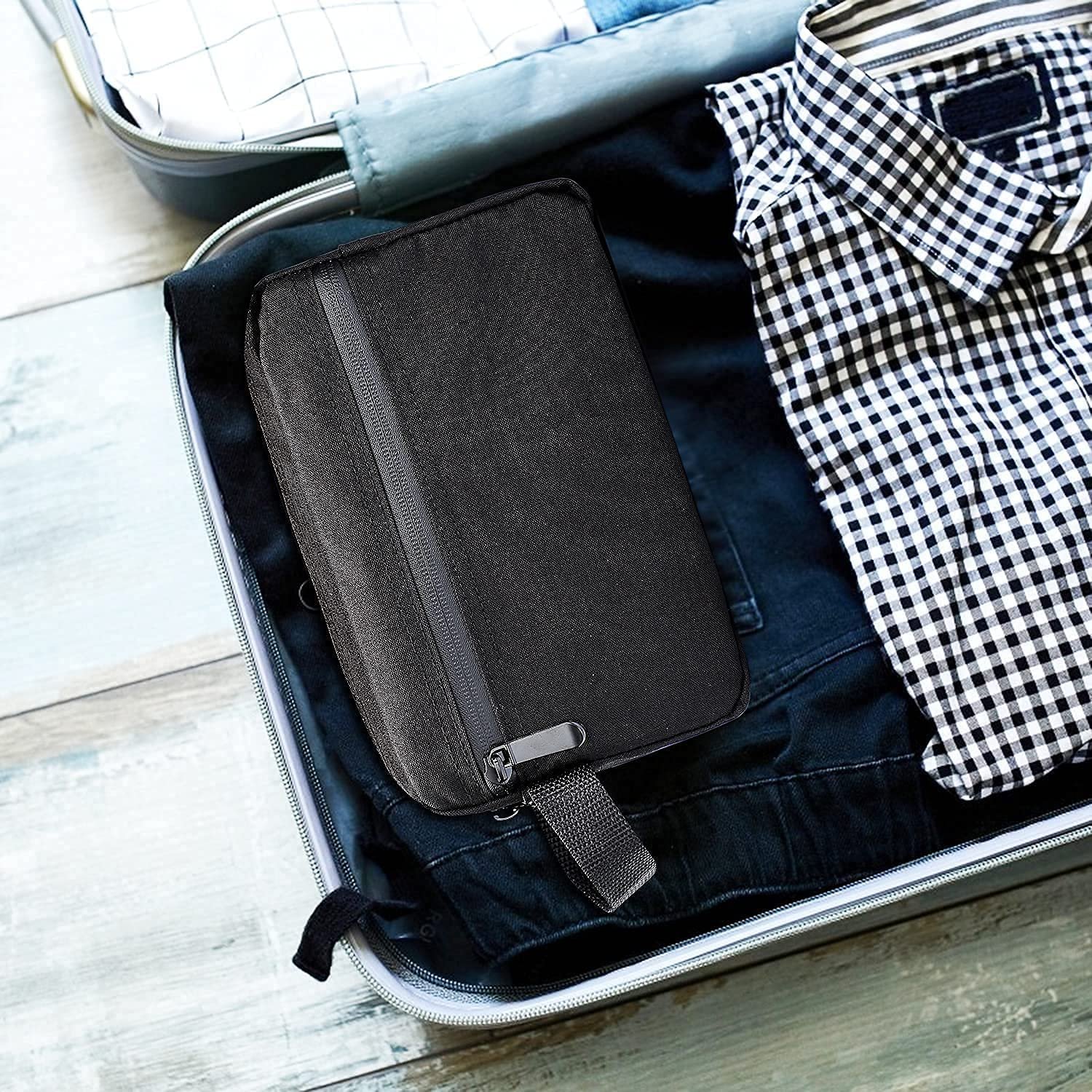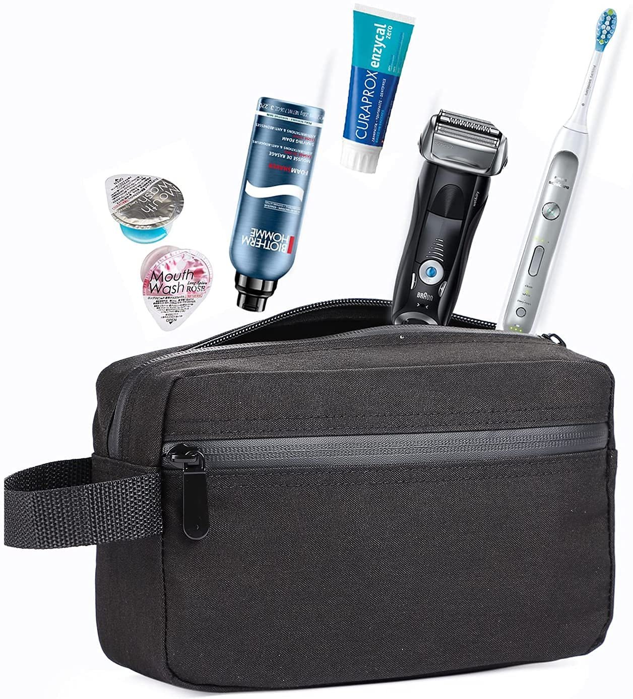 Spacious Travel Organizer fits shaving kits, cosmetics & accessories