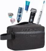 The spacious internal compartment (9.3 x 6 x 3 inches) provides ample room to neatly store your shaving kit, grooming tools, cosmetics, skincare products, and travel accessories without clutter. Its compact yet efficient design fits easily into backpacks, suitcases, or carry-on luggage while saving valuable space.