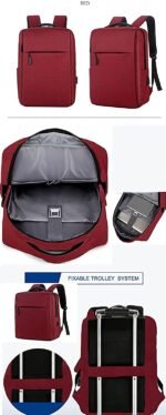 The integrated USB charging port with internal charging cable allows you to power your devices while walking, keeping you connected throughout the day (power bank not included). A rear luggage strap lets you securely mount the backpack on rolling luggage, reducing carrying effort during travel.
