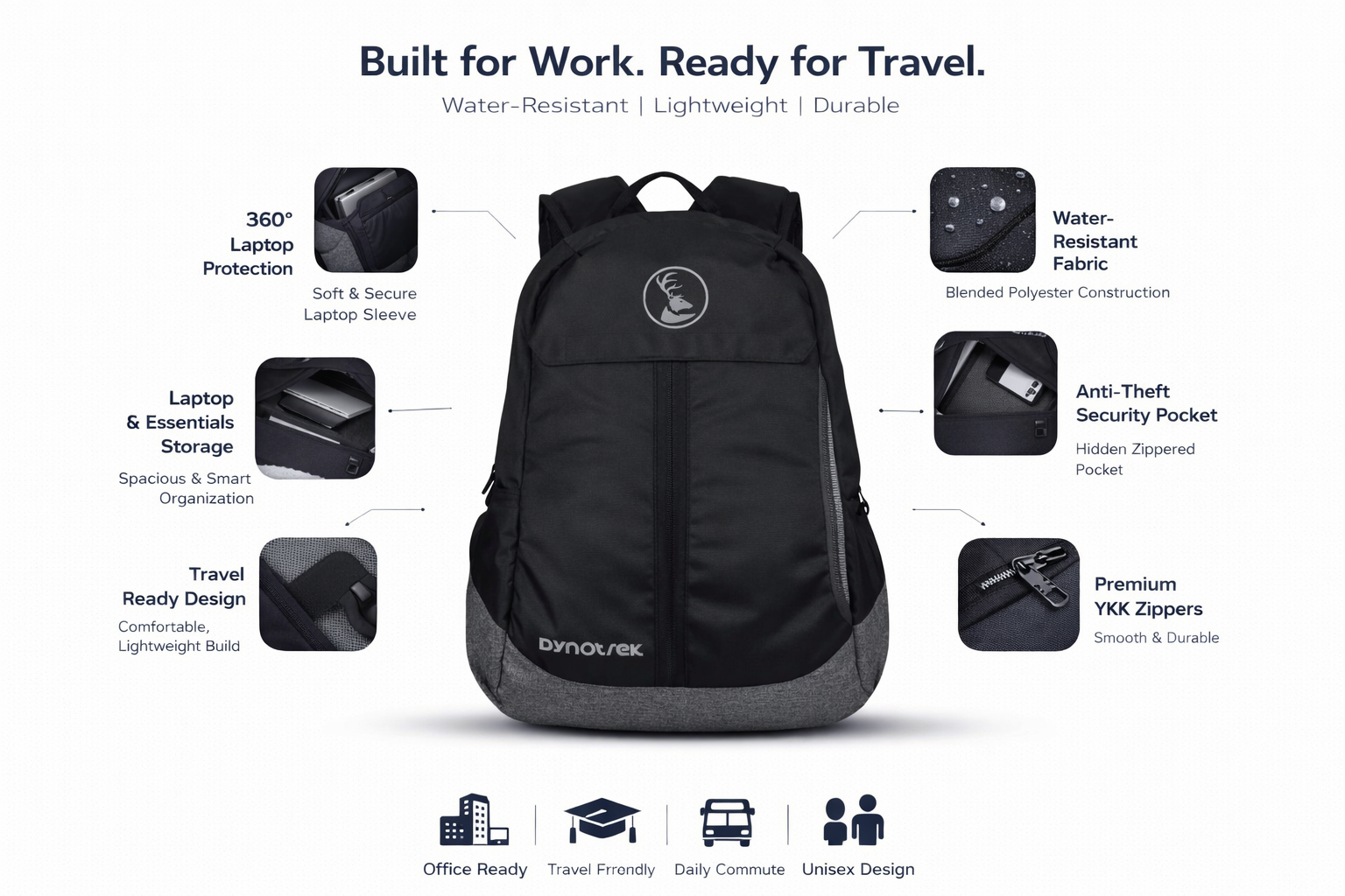 The Dynotrek Tryout Fitpack is crafted for individuals who move seamlessly between work, study, and travel. Designed with a clean, modern aesthetic and engineered for everyday functionality, this backpack supports the fast-paced urban lifestyle without compromising comfort or organization.
